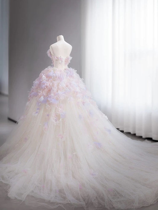 Modest Ball Gown Sweetheart Tulle Long Flowers Sweet 16 Dresses C1785