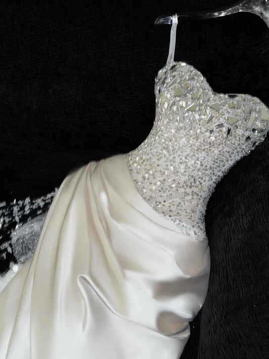 Gorgeous Mermaid Spaghetti Straps Satin Sequin Beads Long Wedding Dresses C4406