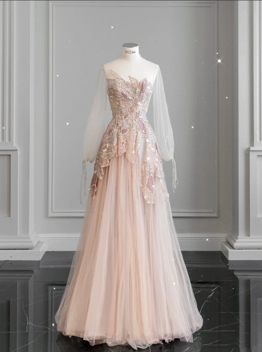 Pink StraplessTulle Ball Gown Beaded Shiny Prom Dress Pink Sweet 16 Dress C613