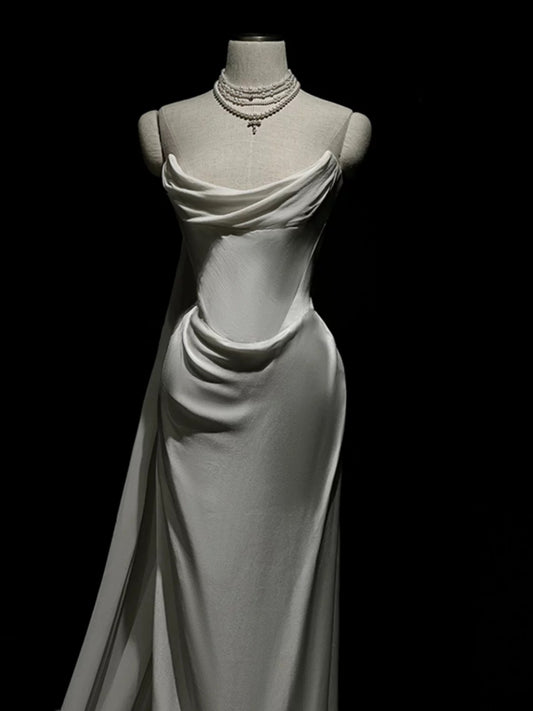 Vintage Mermaid Strapless White Satin Long Wedding Dresses With Ruffles C3532