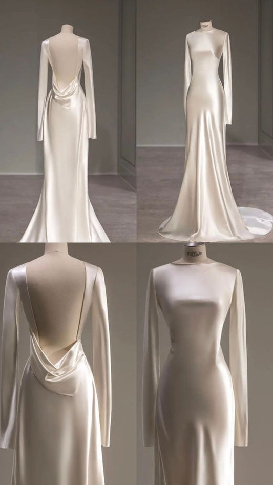 Fairytale With Long Sleeves And Open Back Satin Wedding Dress C311