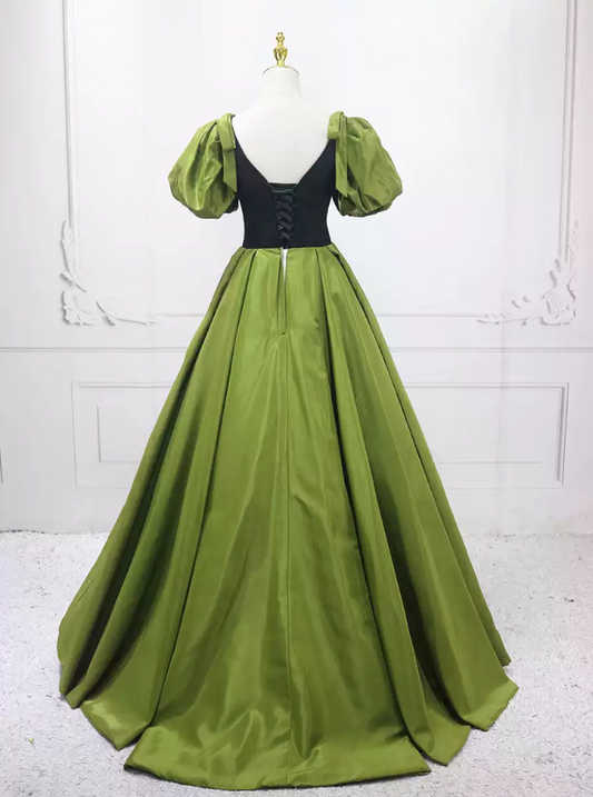 A-Line Puff sleeves Tulle Velvet Purple Long Prom Dress B073