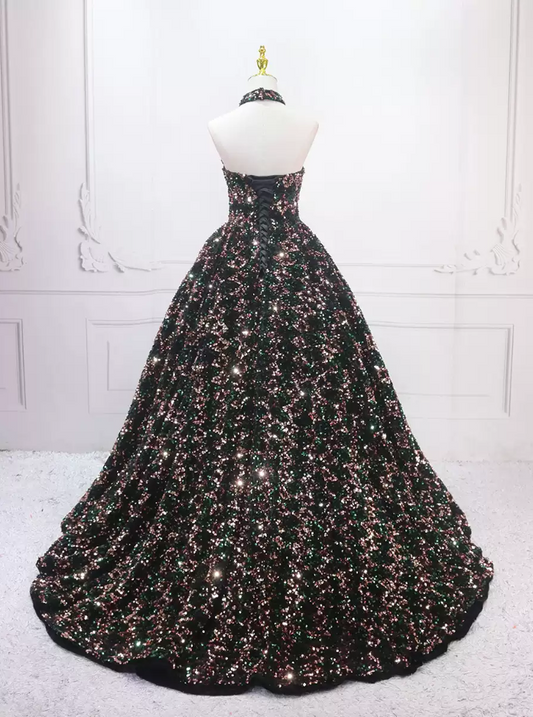 Ball Gown Black Tulle Long Sweet 16 Dresses B060