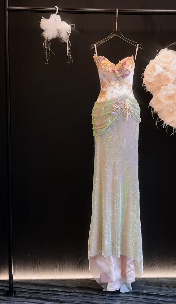 Glitter Mermaid Spaghetti Straps Sequin Long Prom Dress,Formal Dress C5853
