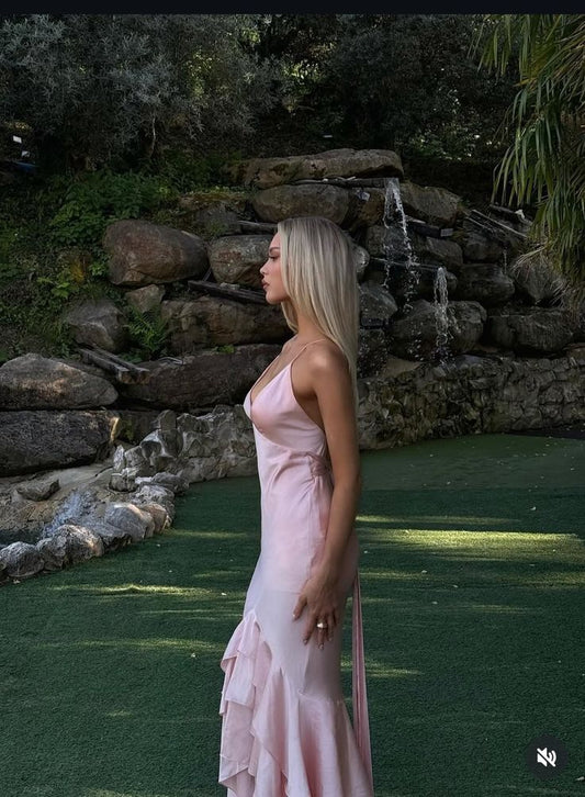 Charming Mermaid Pink Spaghetti Straps Satin Long Prom Dress,Formal Dress C5863