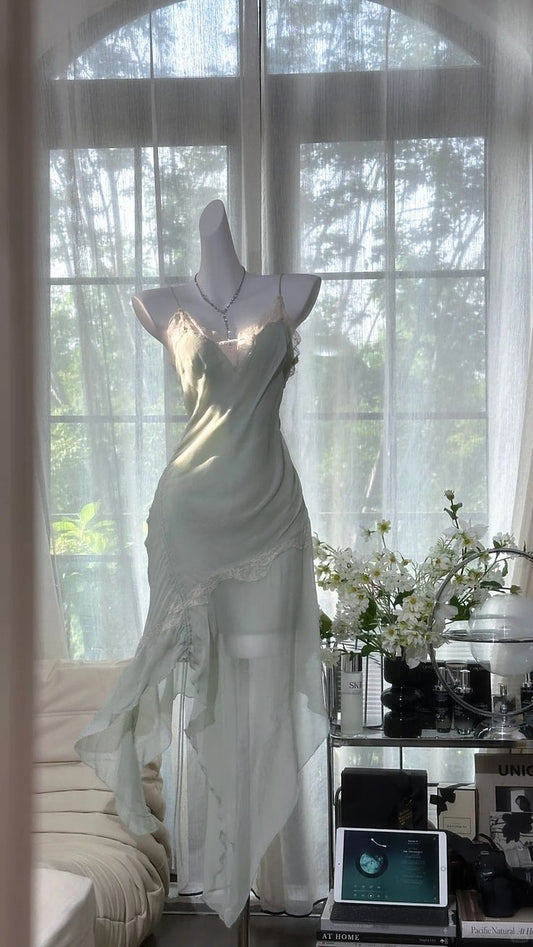 Elegant Mermaid Spaghetti Straps Chiffon Lace Long Prom Dress,Formal Dress C5894