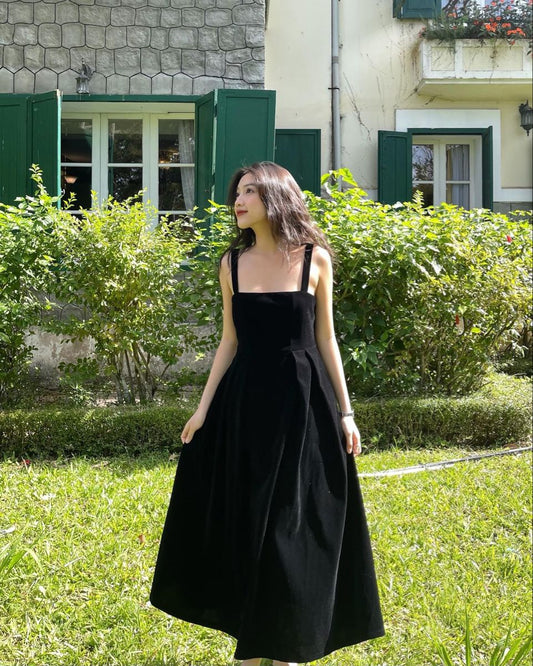 Lovely A Line Black Square Satin Long Prom Dresses Formal Dress C5138
