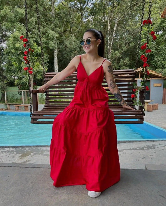 Red A Line Spaghetti Straps Satin Long Prom Dresses Formal Dress C5139