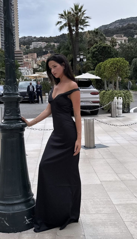 Elegant Mermaid Off The Shoulder Black Satin Long Prom Dresses Formal Dress C5163