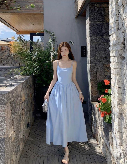 Simple Elegant A Line Spaghetti Straps Satin Long Prom Dresses Formal Dress C5207