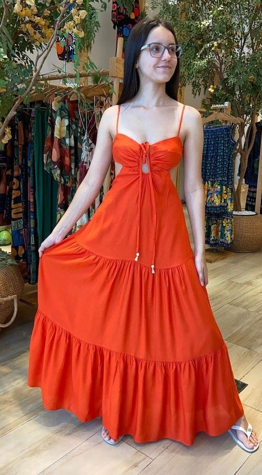 Unique Red A Line Ruffle Spaghetti Straps Satin Long Prom Dresses Formal Dress C5170