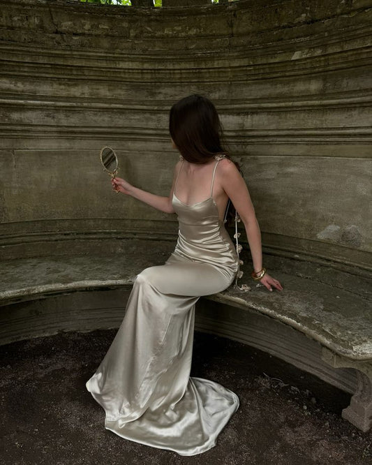 Obessed Mermaid Spaghetti Straps Satin Long Prom Dress,Formal Dress C5997