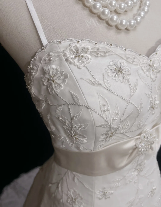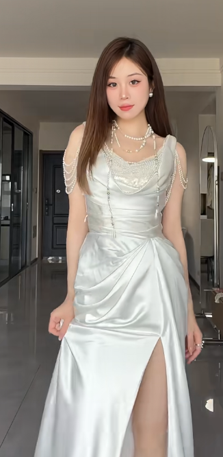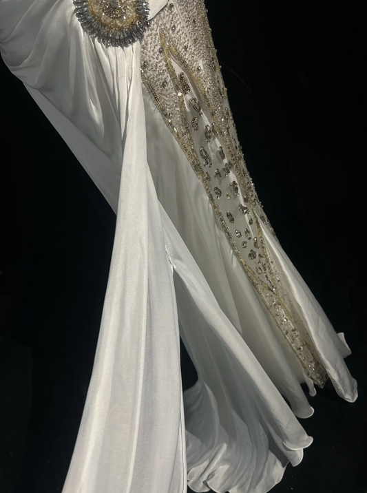 Elegant White Mermaid Satin Beaded Slit Without Sleeves Long Prom Dress, Evening Dress C6548