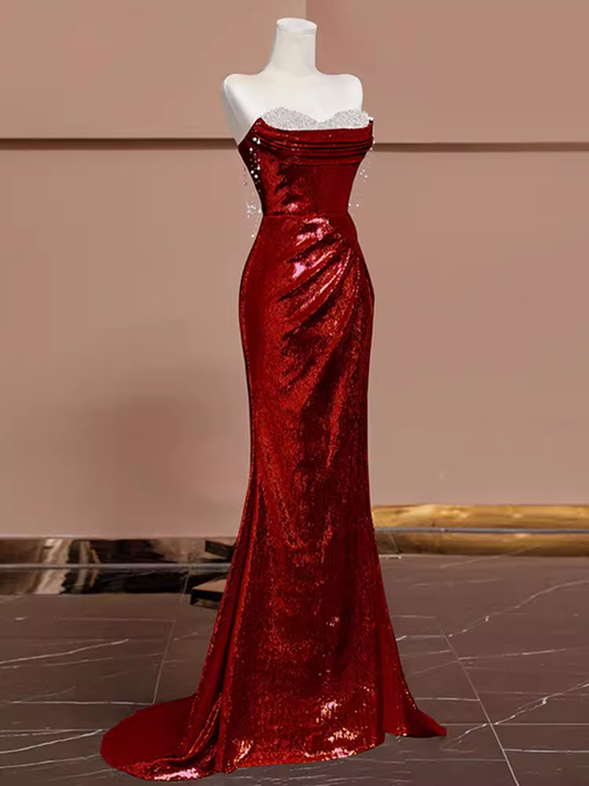 Sexy Mermaid Burgundy Sequin Long Prom Dress B361