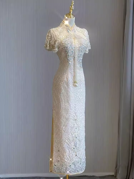 Sexy Sheath Short Sleeves Sequin Prom Dresses C840
