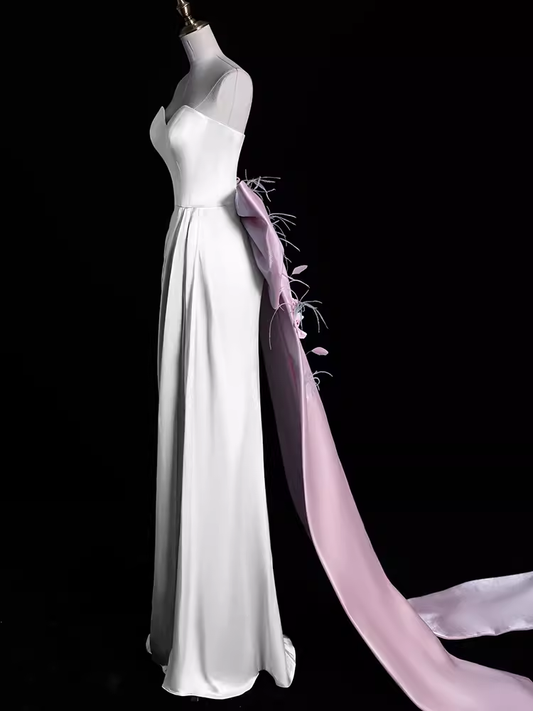 Simple Mermaid Strapless Sleeveless Satin White Long Prom Dress D037