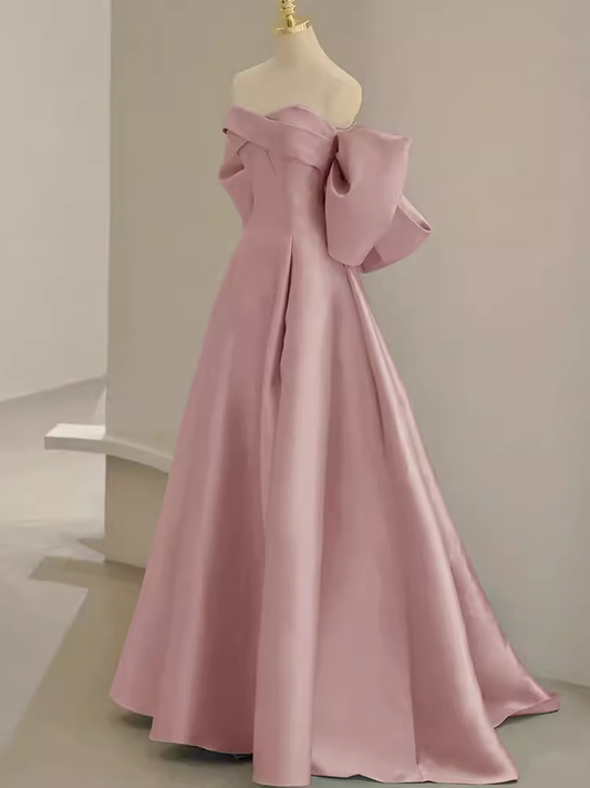 A-Line Off Shoulder Satin Champagne Long Prom Dress B242