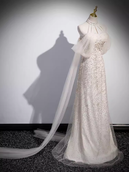 Mermaid High Neckline Sequin Long Prom Dress B175