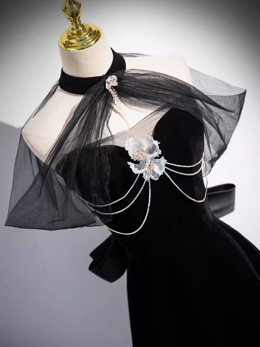 A-Line Black Velvet Long Prom Dress B173