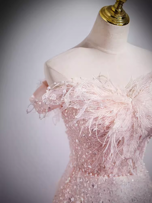 Sparkly A Line Off The Shoulder Pink Long Prom Dress B185