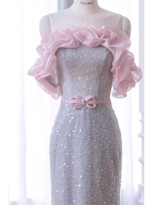 Mermaid Off The Shoulder Short Sleeves Sequin Long Prom Dress B192