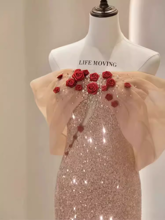Sparkly Mermaid Strapless Pink Long Prom Dress B186