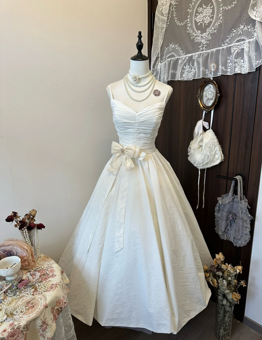 Cute A Line Spaghetti Straps Pleated Satin Long Prom Dress, Evening Dress C6144
