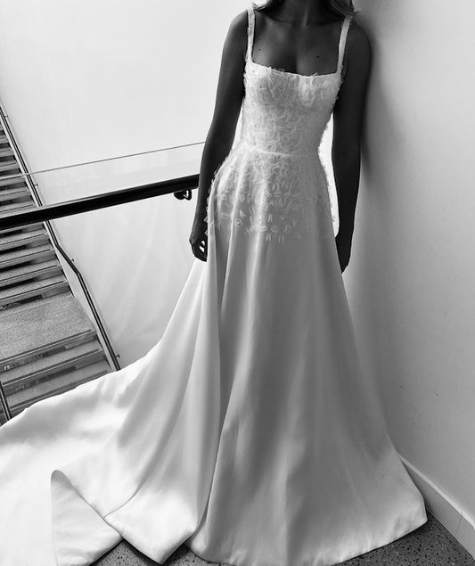 Elegant A Line Spaghetti Straps Long Satin White Prom Dresses Evening Dress C3000