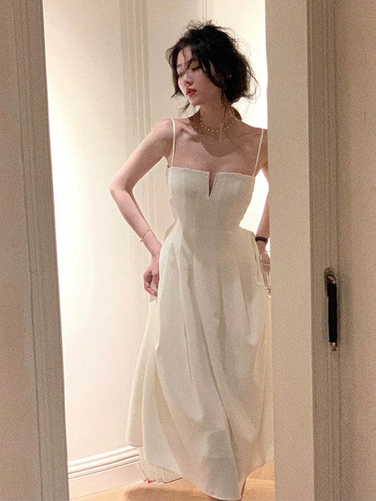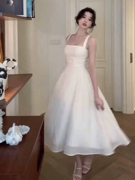 Simple A line Spaghetti Straps White Sleeveless Prom Dresses Birthday Party Dress C3655