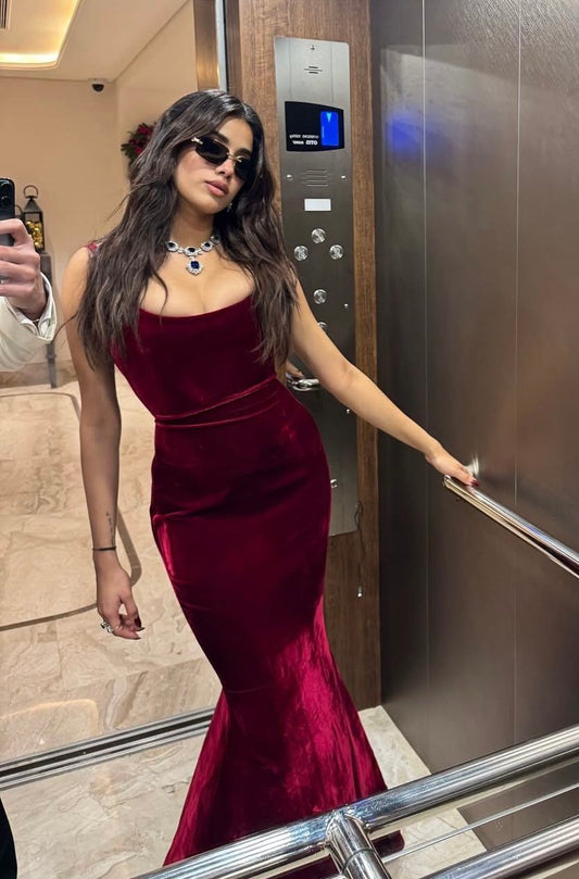 Unique Sexy Spaghetti Straps Mermaid Burgundy Velvet Without Sleeves Long Prom Dress, Evening Dress C6363