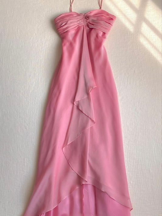 Pretty Sheath Spaghetti Straps Pink Long Chiffon Prom Dresses Evening Dress C2943