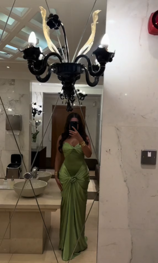 Princess Strapless Off The Shoulder Long Sleeves Dusty Green Floor Length Long Prom Dresses C2856