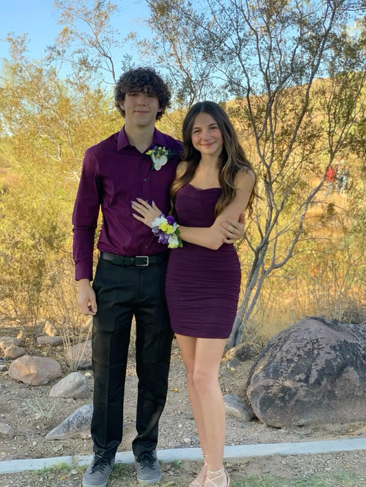 Grape Mermaid Spaghetti Straps Satin Short Homecoming Dress 21th Birthday Outfits C5820