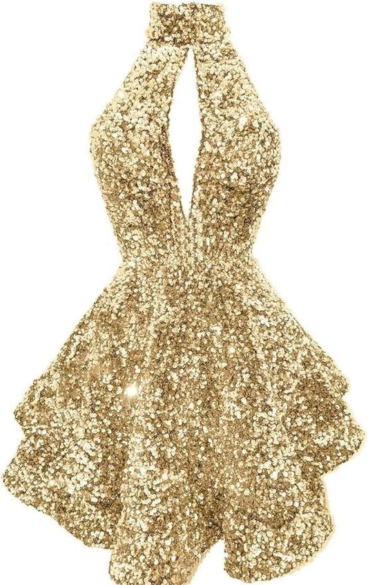 Halter Sequin Homecoming Dresses Short Sparkly Glitter Cutout Mini Backless Tight Bodycon C1199