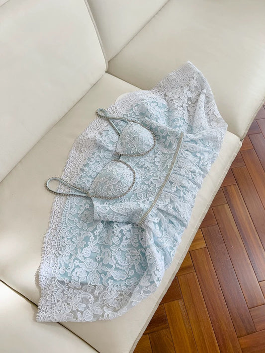 Modest A line Spaghetti Straps Light Sky Blue Lace Ankle Length Prom Dress Formal Dresses C2229