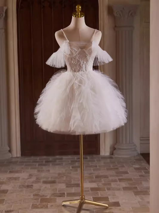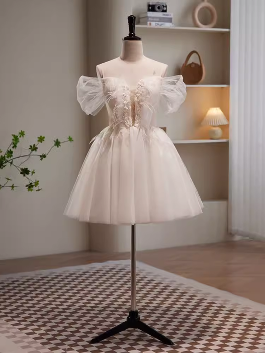 Modest Ball Gown Off The Shoulder White Tulle Birthday Outfits Homecoming Dress C942