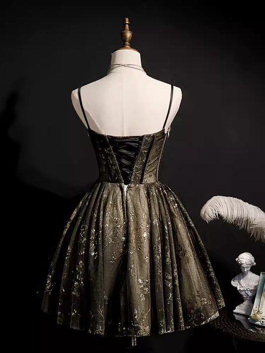 Modest Ball Gown Spaghetti Straps Black Tulle Birthday Outfits Homecoming Dress C946
