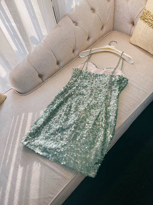 Modest Sheath Straps Sequin Green Short Homecoming Dresses Birthday Outfits With Beads C2227