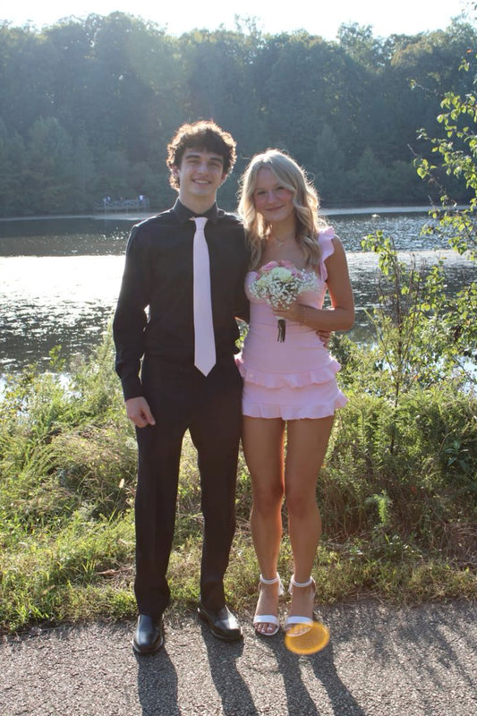 Pink Sequin Ruffle Asymmetrical Mini Dress Homecoming Dresses C381