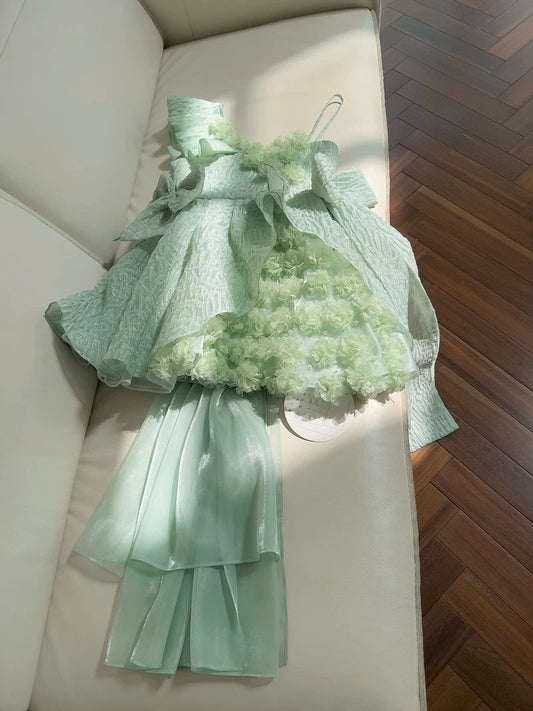 Pretty Ball Gown Straps Mint Green Lace Flowers Homecoming Dresses Birthday Outfits With Bow C2240