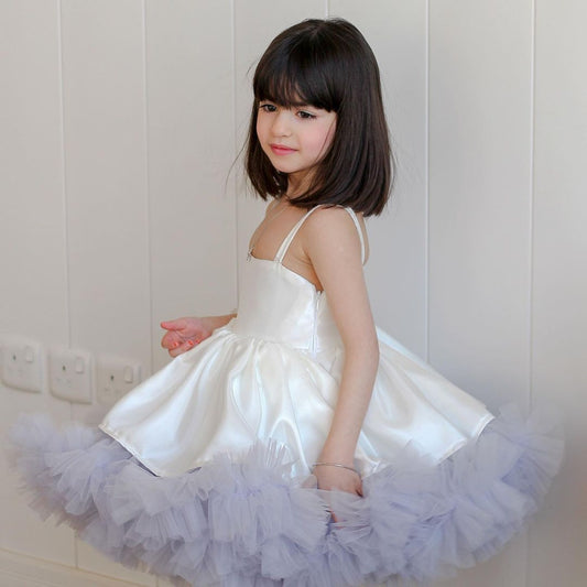 Princess Ball Gown Spaghetti Straps Satin Tulle Flower Girl Dress C6031