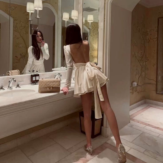 Sexy Ball Gown High Neckline Long Sleeves White Backless Homecoming Dresses 21st Birthday Outfit C2115