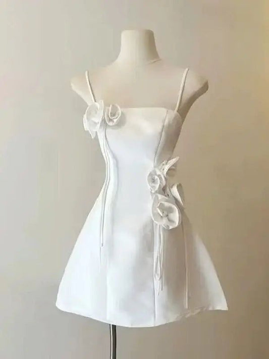 Simple A Line Spaghetti Straps Short Birthday Dress White Homecoming Dresses C469