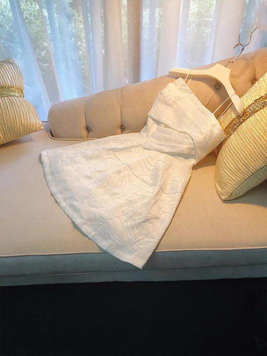 Cute A line Spaghetti Straps Bowknot White Short Homecoming Dress Birthday Dresses C1878