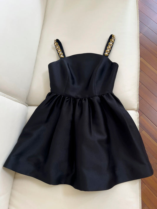 Cute A Line Spaghetti Straps Black Satin Beads Short Homecoming Dress 18th Birthday Outfits C5390