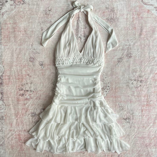 Elegant A Line Halter White Satin Short Homecoming Dress 18th Birthday Outfits C5414