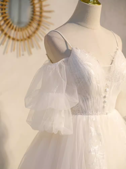 Elegant Ball Gown Straps Tulle Party Dress White Homecoming Dress C445