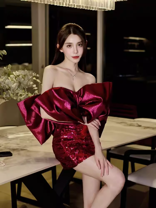Elegant Sheath Strapless Ombre Burgundy Red Slim Fit Satin Prom Dress Evening Dresses C2181