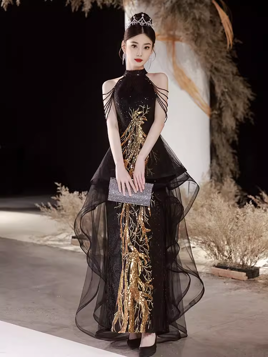 Sexy Mermaid Sequin Black Prom Dresses C53