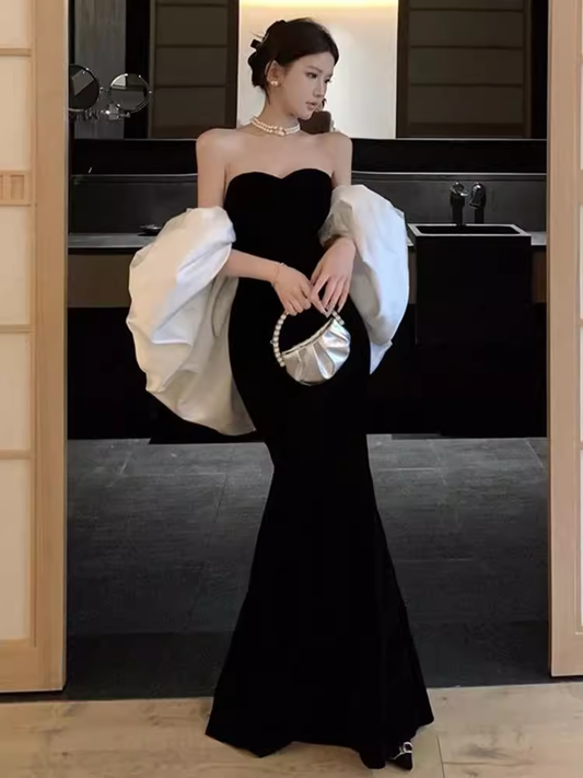Elegant Mermaid Off The Shoulder Black Prom Dresses With Cape Evening Dress C2772